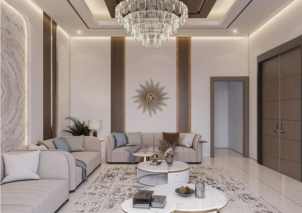 High-quality 3D interior renderings allow clients, designers, and contractors to visualize the final interior design before execution, including materials, colors, textures, lighting effects, and furniture placement.