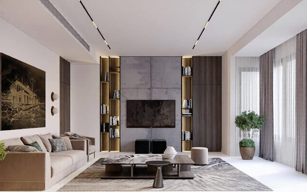 High-quality 3D interior renderings allow clients, designers, and contractors to visualize the final interior design before execution, including materials, colors, textures, lighting effects, and furniture placement.