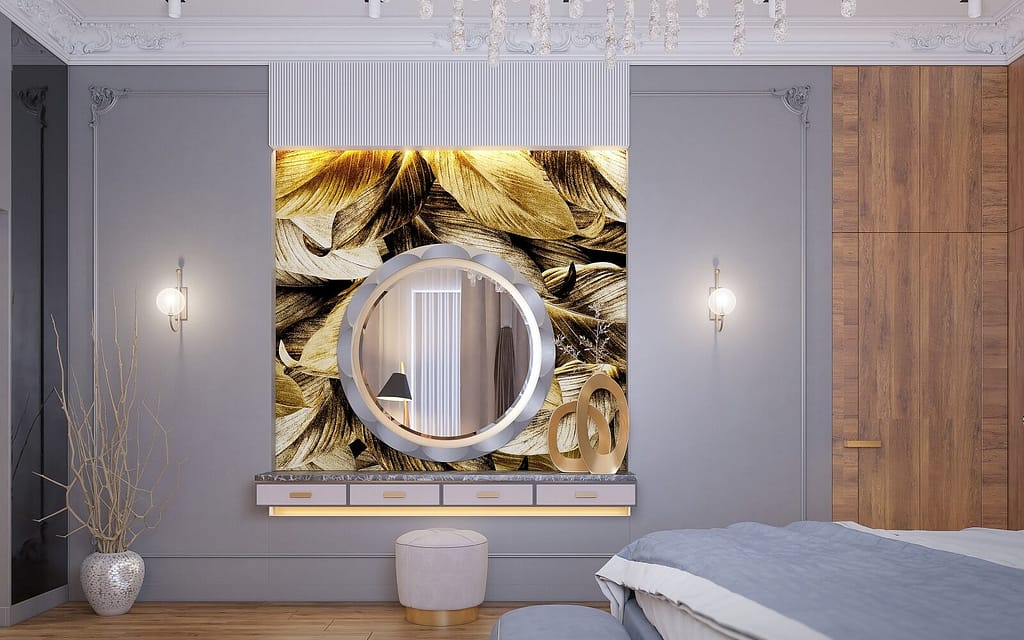 Modern bedroom interior design emphasises simplicity, clean lines, and organised layouts. Designers focus on proportion, symmetry, and refined details to achieve a contemporary look. In addition, neutral tones with wood accents, fabric panels, or subtle metallic finishes create a warm, inviting space without visual clutter.